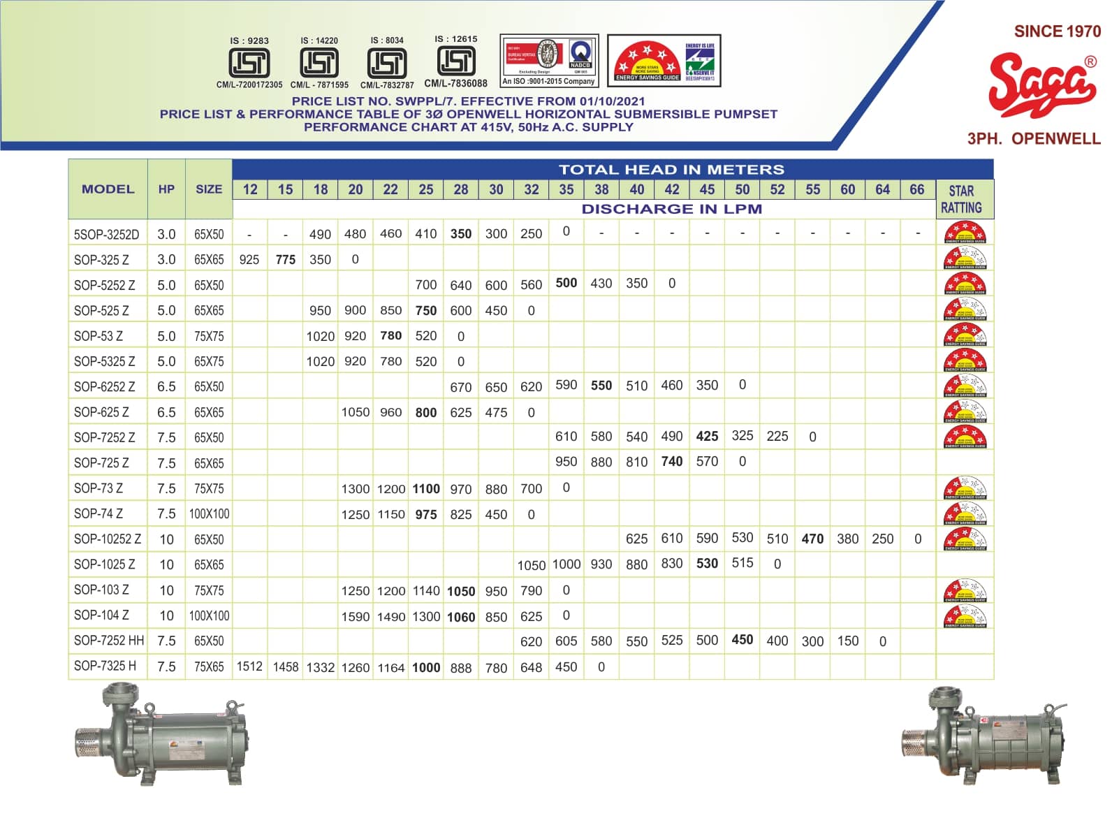 SOP -3252S | 3.0 | 65X 50 | - | 450 | 425 | 400 | 350 | 300 | 260 | 180 | - | - | - | |